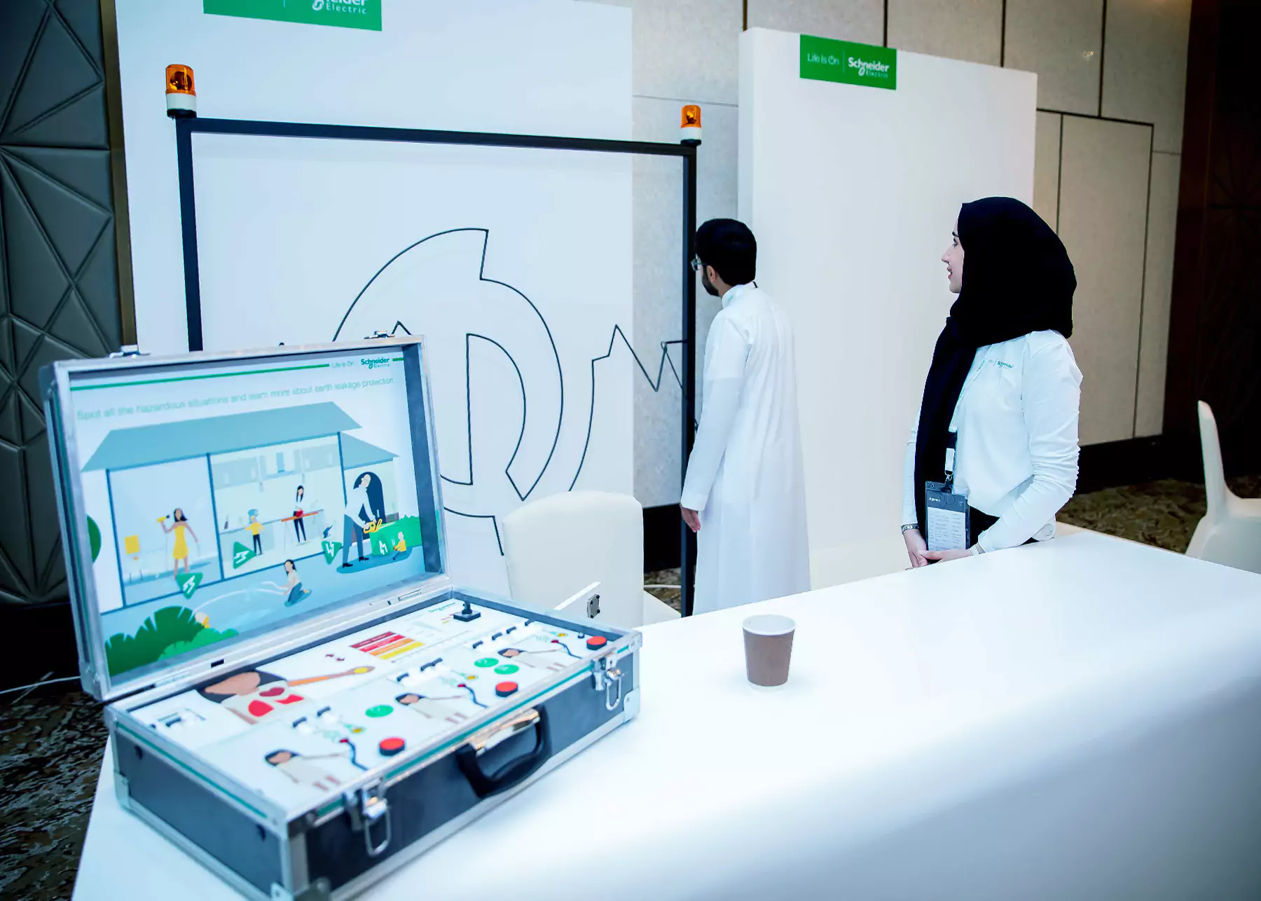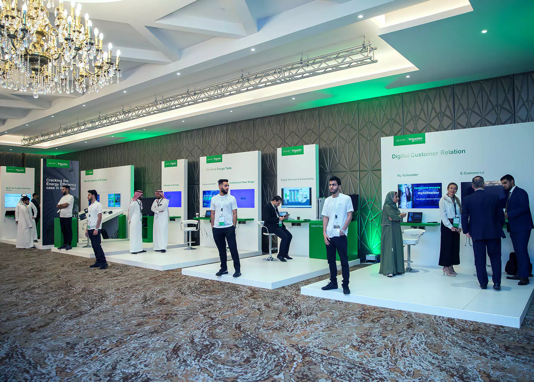 To showcase the numerous new products, our team meticulously planned an engaging experience for attendees. We made sure to provide entertainment by setting up a gaming area, as well as private workshops to delve into specific subjects. To give attendees a closer look at Schneider Electric’s services, we created separate booths for each one, complete with live demonstrations for each service they provided. We provided comprehensive event management services, including the production of display stands for the new products and managing the audio-visual and other booth elements.