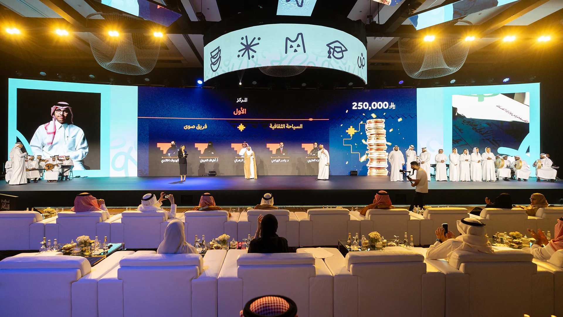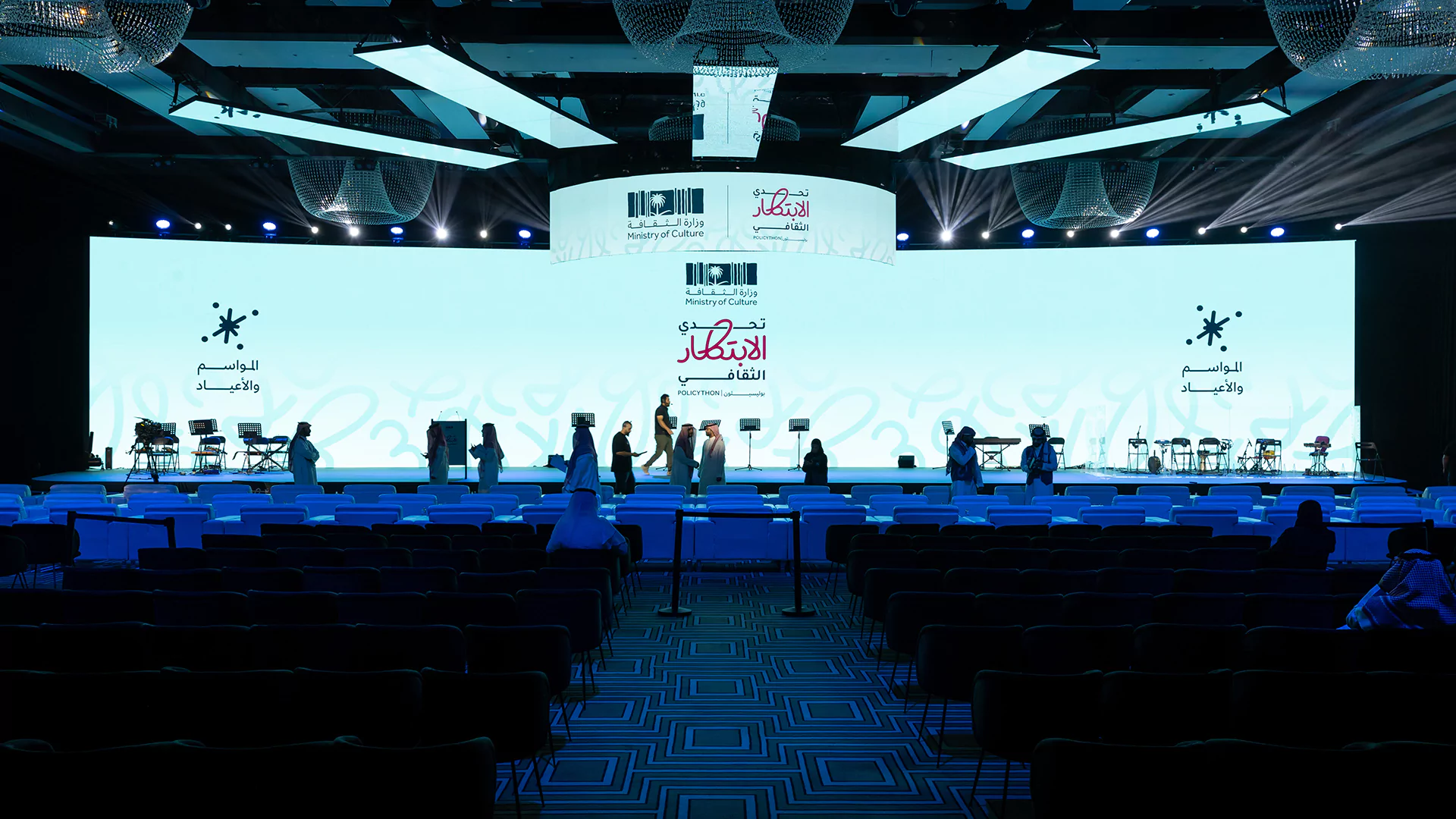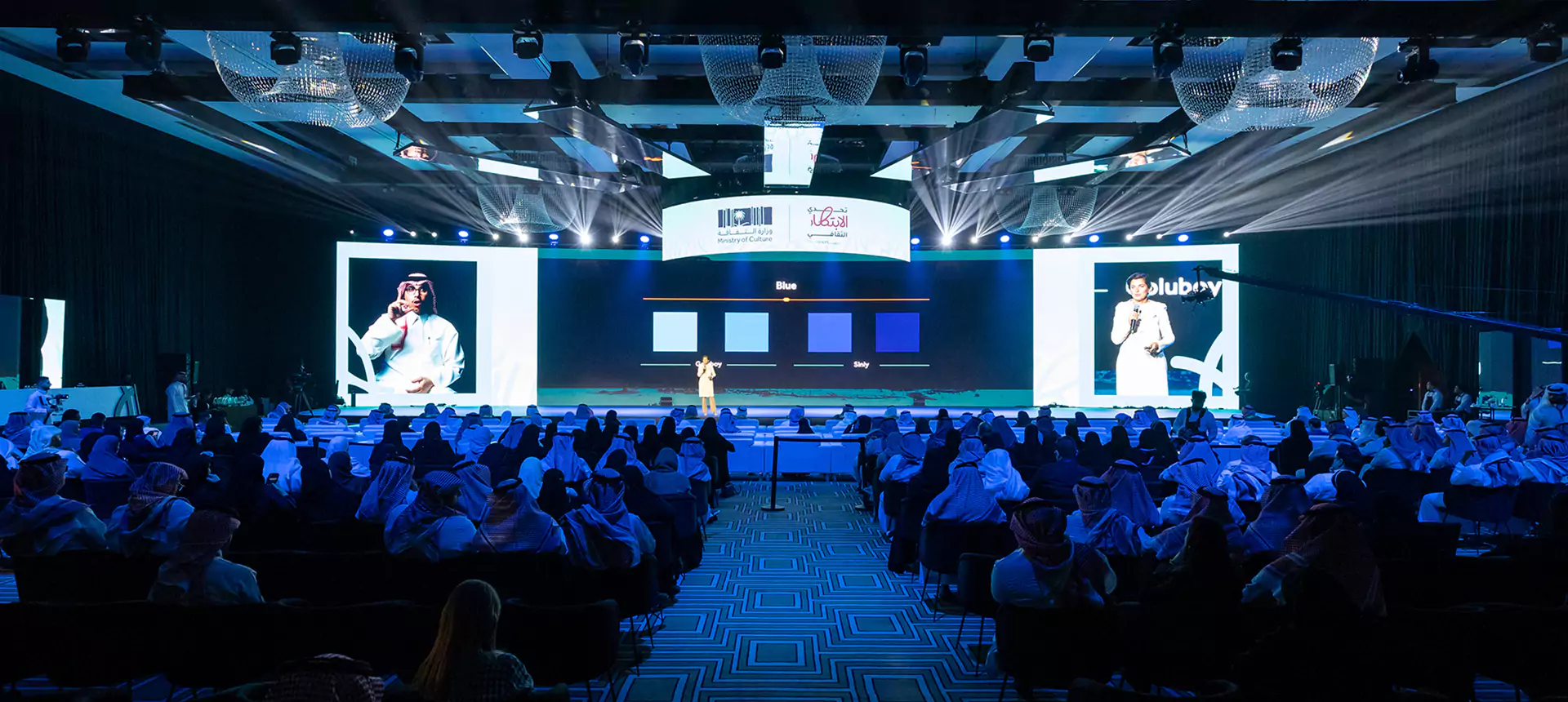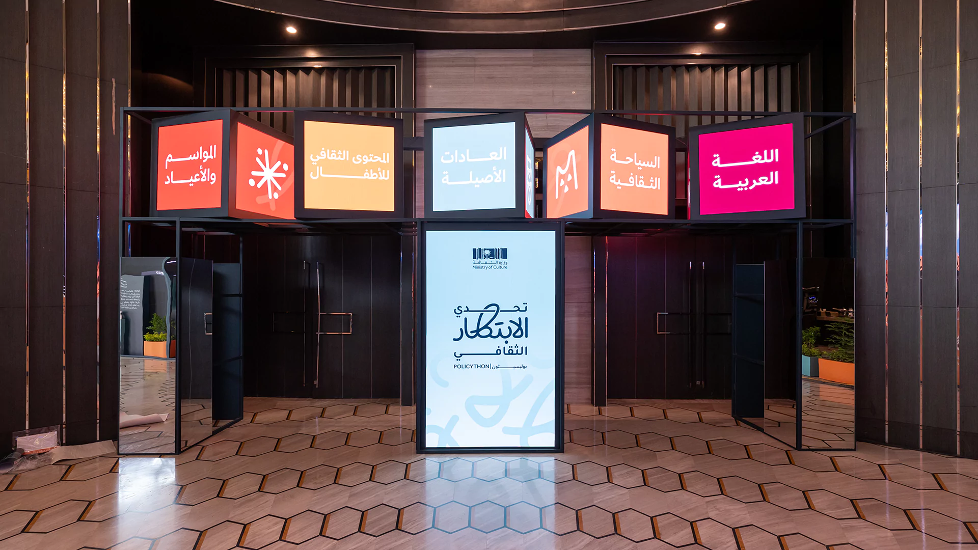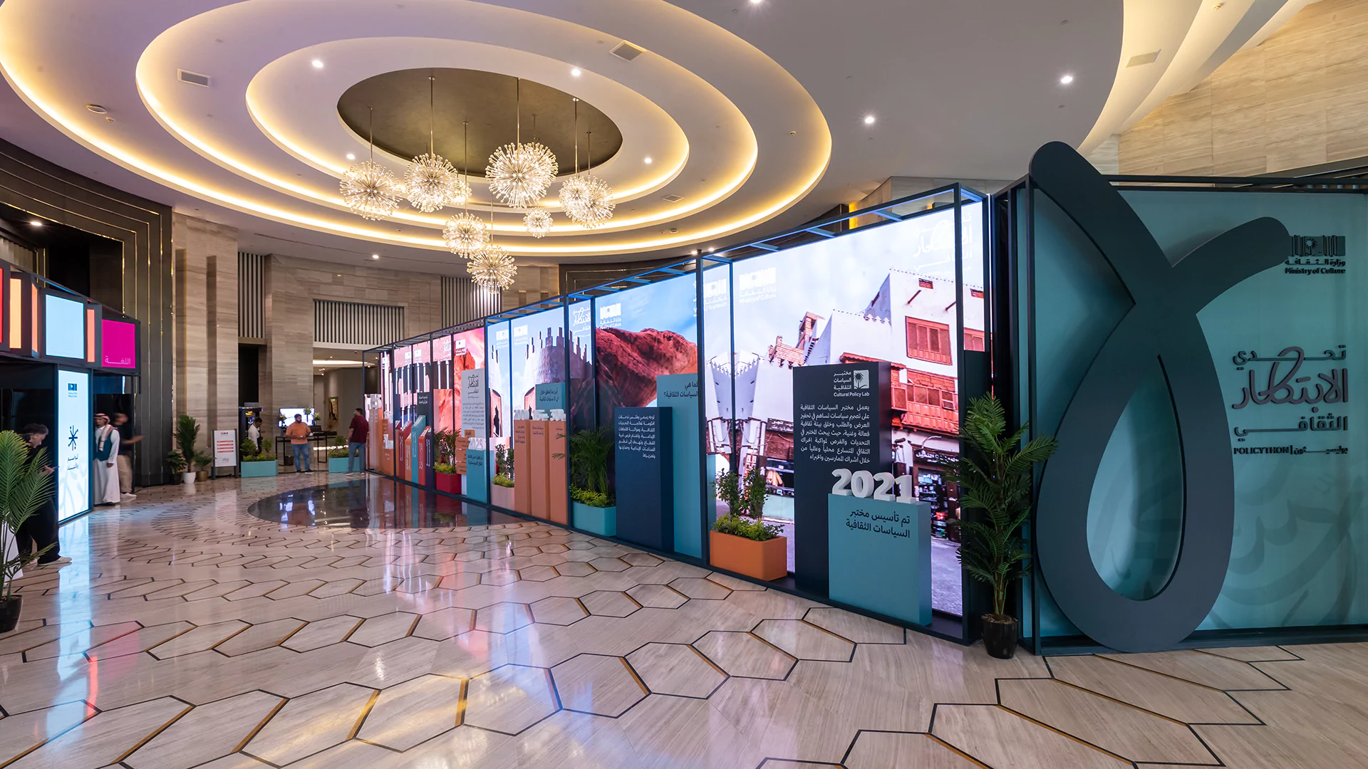 Held over two immersive days, the cultural policy bootcamp served as a key platform for developing final ideas and selecting five standout teams to compete at the final stage. Dice was responsible for the entire experiential and spatial design, transforming the venue into an innovation-driven, Saudi-inspired space. This included branded collaboration zones, media walls, a custom judges’ area, and 15 interactive digital exhibition booths equipped with live streaming setups. From stage design and cultural theming, like Najdi doors and Sadu fabric accents, to branded materials and authentic Saudi hospitality, we created an environment that was both functional and emotionally resonant.