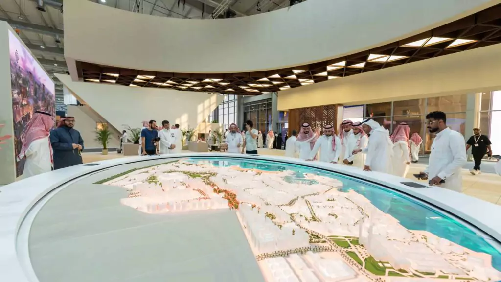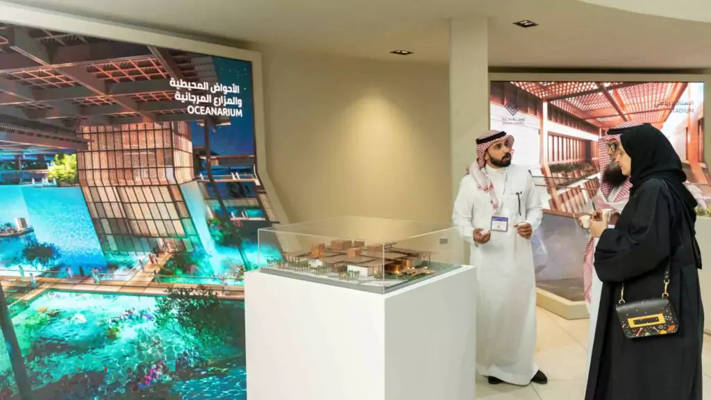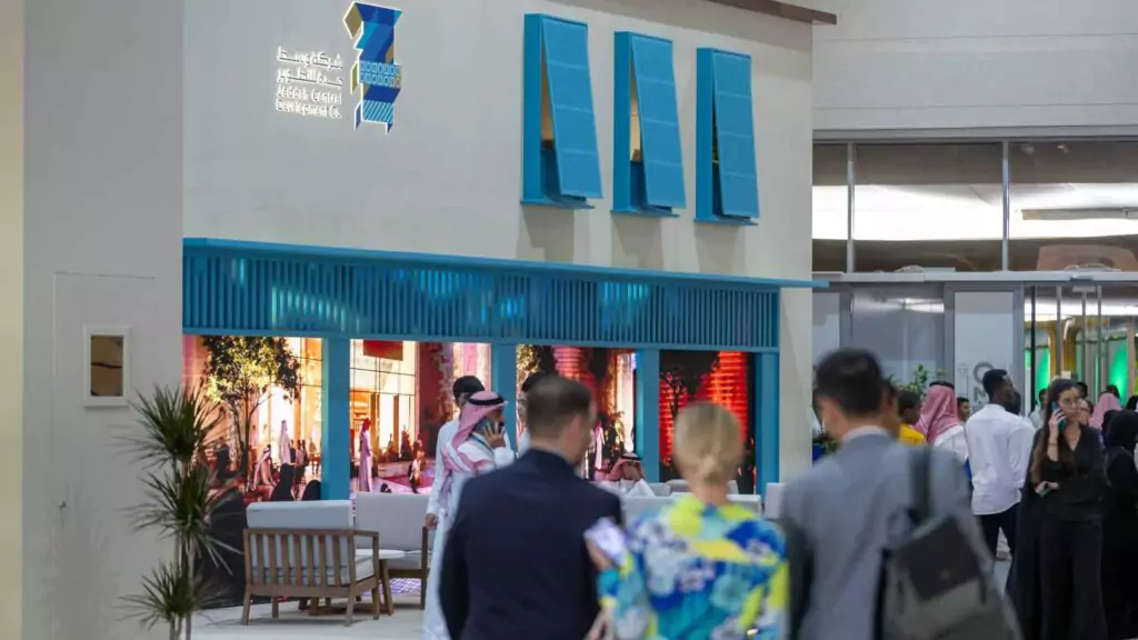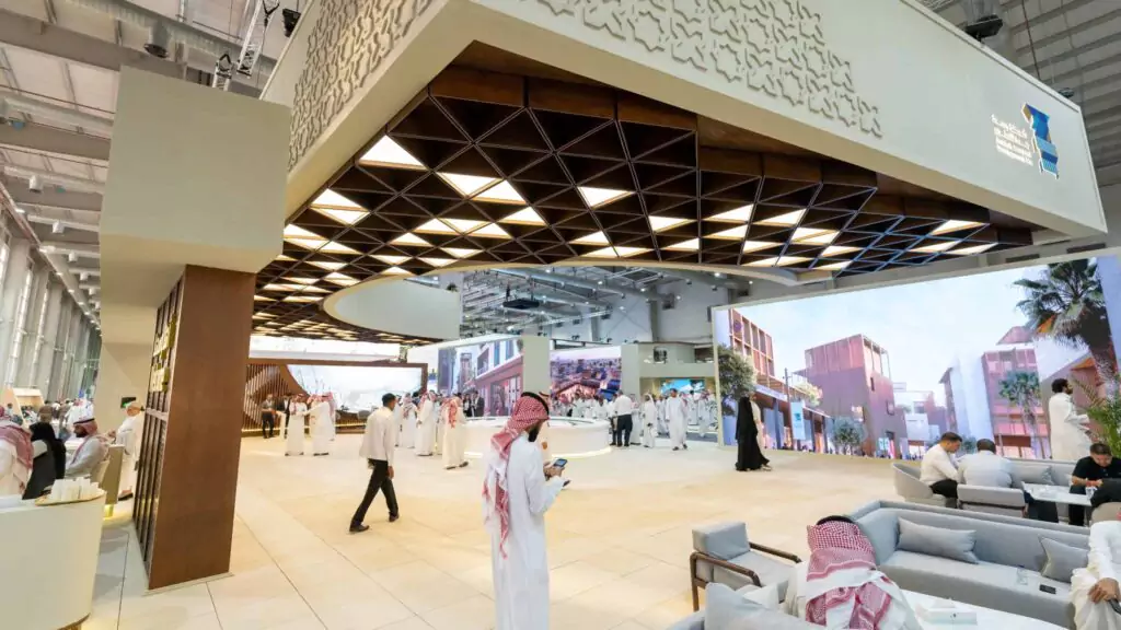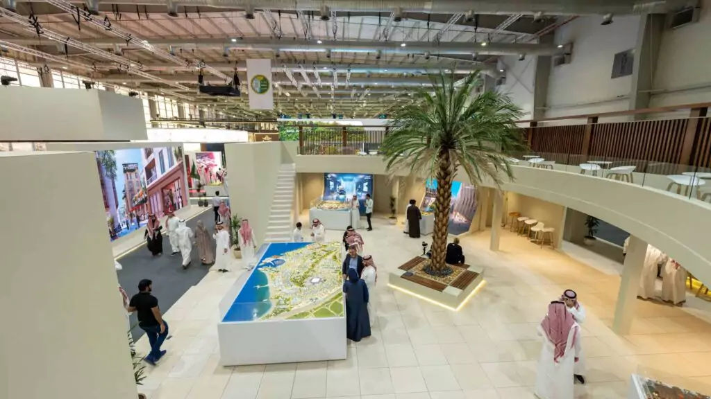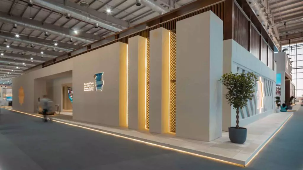 Our comprehensive services spanned 30 days of production and 10 days of installation, engaging over 150 skilled laborers attending around the clock. The conceptual design of the booth was tailored to JCDC’s brand identity and objectives, our team of 3D designers crafted a booth design that matches the essence of the brand, and our production experts used specific materials from paint, tiles, and various other materials that reflect the true look and feel of Jeddah central.