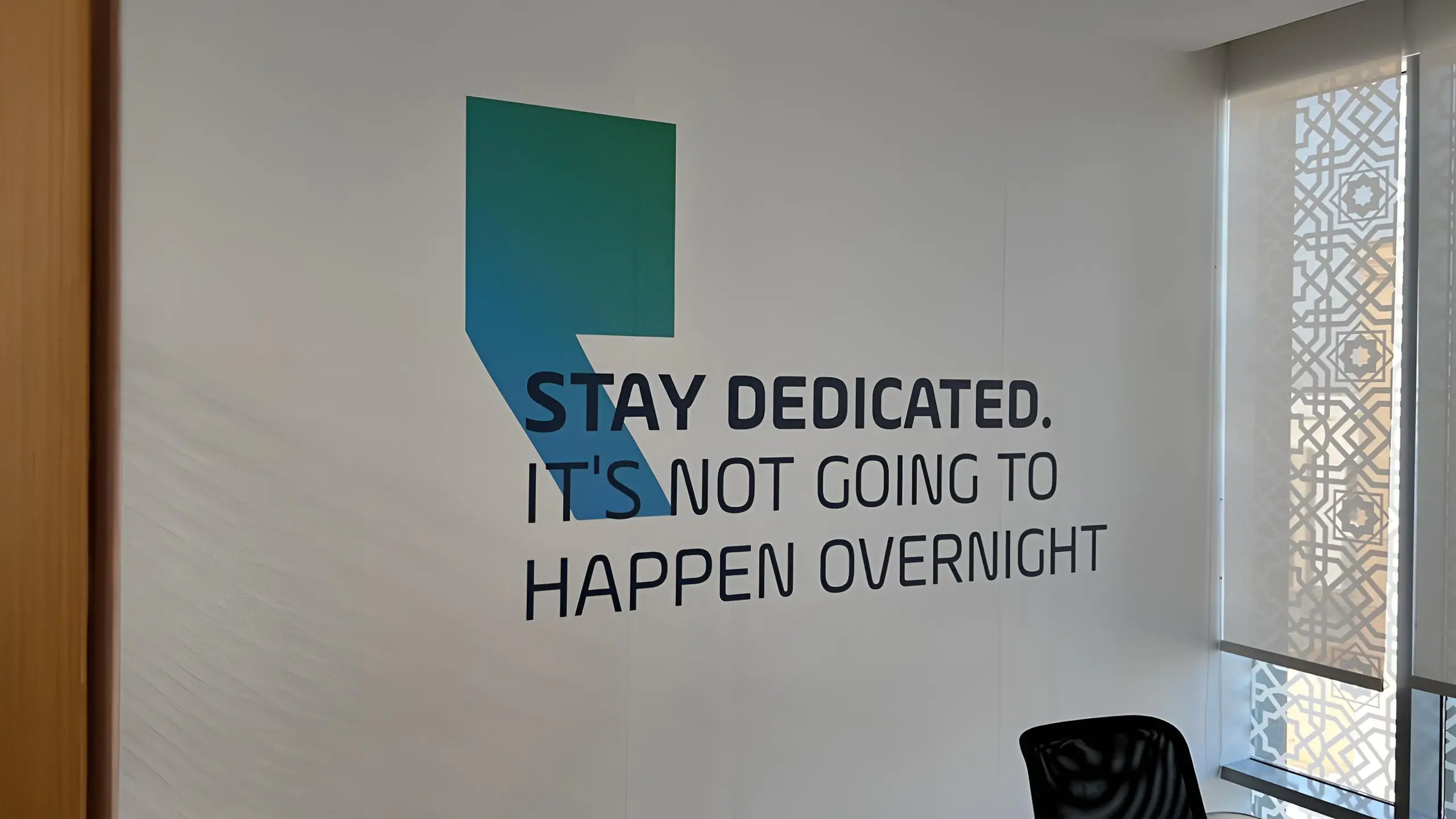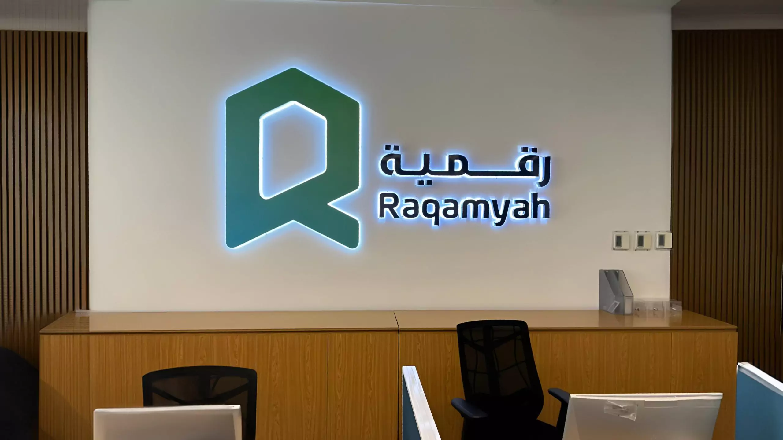 Raqmyah required office branding to synchronize its physical space with the essence of its revitalized logo. The creative team skillfully designed and executed the project, ensuring not only the conceptualization of designs but also their production and installation. The team adeptly focused on optimizing the available space to promote collaboration and creativity.