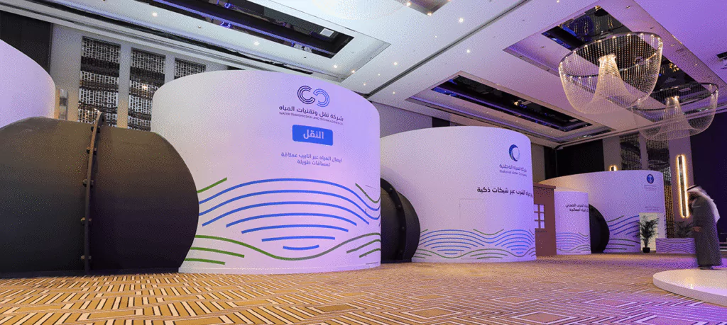 In a limited time frame, our production and logistics team successfully managed the overall high quality of all production elements central to the event concept, creating an immersive experiential journey that showcased the process of making seawater suitable for consumption and industrial use. We quickly designed and built prominent installations from scratch, leaving a lasting impression on all attendees while also effectively managing logistical challenges with limited space.